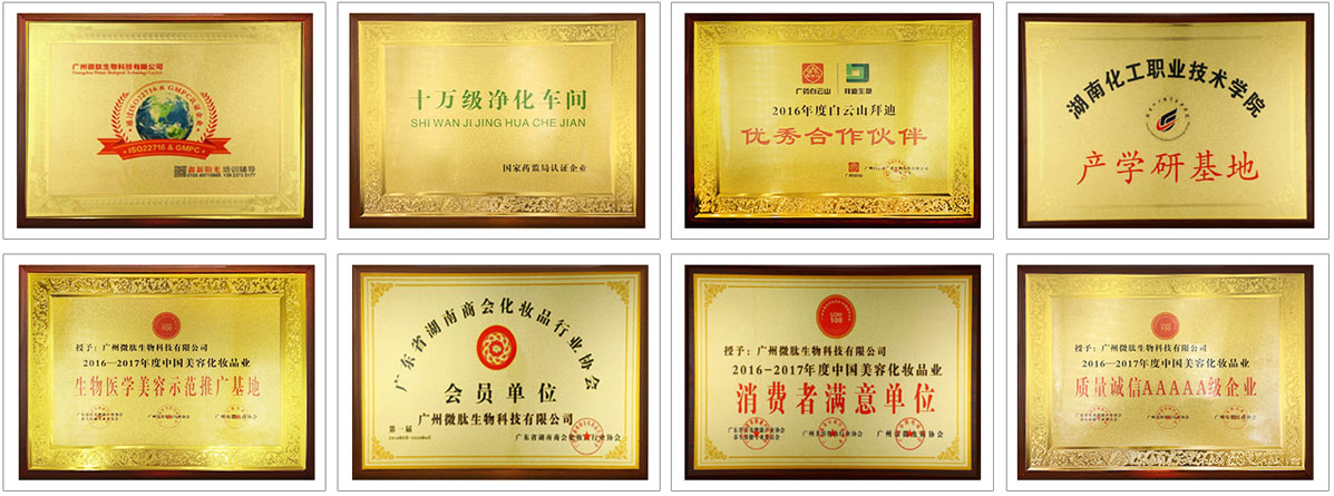 是護膚類產品、面膜類產品、身體類產品、微商化妝品加工、OEM化妝品加工,ODM化妝品加工,網購化妝品加工等產品專業生產加工的公司,擁有完整、科學的質量管理體系,是集化妝品研制開發、生產制造、技術服務、OEM/ODM品牌加工四位一體化的專業工廠,2016年微肽生物更是通過了歐盟ISO22716和美國GMPC雙重認證。工廠坐落在環境幽雅、交通便捷、物流發達的白云區石井街大朗十五社工業區。