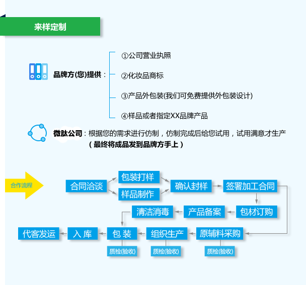 主營業務 / 專業線化妝品加工 / 二類械字產品代加工 / 消字號產品OEM / 各種面膜代加工